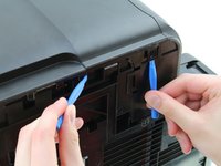 Insert the plastic opening tool underneath the slot on the right that aligns with the edge of the back panel.