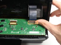 Remove the ribbon cable by gently releasing the plastic locking mechanism and pulling the cable away from the circuit board.