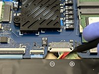 Use the flat end of a spudger to pull the right edge of the 12 pin connector towards you. Repeat this same action to the other side of the connector and do so until it is completely free.