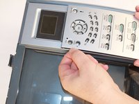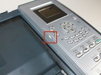 From the front of the printer, remove the button panel by pulling it towards you while slightly lifting it up.