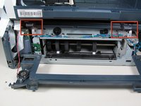 The scanner tray is the part of the printer that houses the entire scanner. It is connected to the printer by two hinges, 3 white strip wires, and 1 orange brown red and black wire. After the tray is removed the feed rollers can be cleaned, and printer carriage can be replaced. If you need to replace the scanner tray of your HP PSC 2410 Photosmart All-In-One printer, follow this guide.