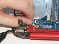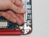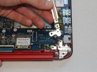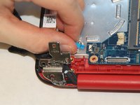 Remove one 3mm screw using the PH0 screwdriver from the metal hinge located on the power connector side of the computer.