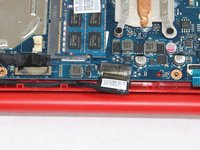 Disconnect touch pad cable by pulling up and away from the motherboard.