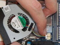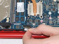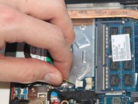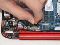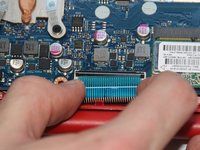 Remove the battery cable from the motherboard by gently pulling out on the black part of the cable closest to the white tab.