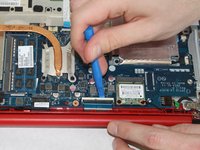 Use the spudger to pry the corners of the laptop near the display hinges.
