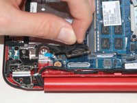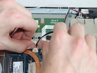 Pull the cable horizontally away from the motherboard to disconnect the power button board cable.