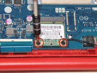 Pull the wireless card out of its port to disconnect it from the motherboard.