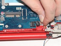 Pull the cable horizontally away from the motherboard to disconnect the speaker cable.