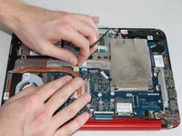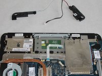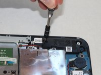 Disconnect the black cable that attaches the speakers to the motherboard by gently pulling the cable outward.