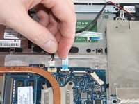 Remove the battery cable from the motherboard by gently pulling out on the black part of the cable closest to the white tab.