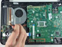 This guide provides the steps to remove and replace the cooling fan on a HP Pavilion 14-b120dx laptop. During this process be advised to power down the device to prevent electrical shock and be careful when applying force to prevent damage to the motherboard or cables.