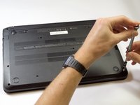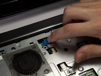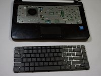Go little by little around the edge and carefully pry off the plastic palm rest assembly.