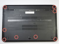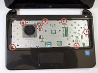 Locate these seven 5mm circled screws on the panel that was under the keyboard.