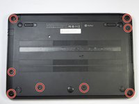 Locate these eight 7mm screws on the bottom of the laptop.