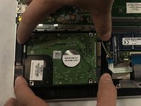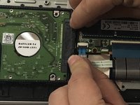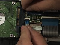 Disconnect the hard drive cable from the motherboard by sliding it left to right.