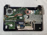 Disconnect the wiring harness that is routed through the speaker from the motherboard.