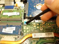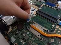 Unlock and disconnect the cable connected to the underside of the motherboard.