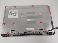 On the back side of the laptop, where the battery is, there are 12 black plastic clips. Use a plastic opening tool and pry all of these clips, unlatching them from the case.