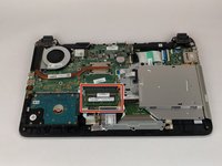 Locate the RAM stick, will be next to hard drive. Unclip the two silver retainers on each side.