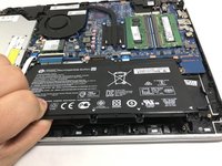 Gently pull up on the battery and tilt it away from the rest of the laptop chassis.