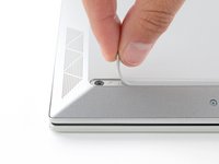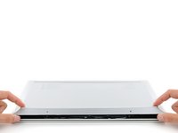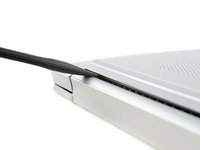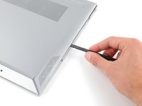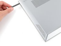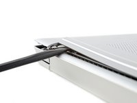 Insert the flat end of a spudger between the top edge of the back cover and frame, just to the right of the left hinge.
