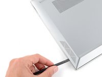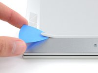 Use an opening pick to peel up an end of the front rubber foot until you can grip it with your fingers.