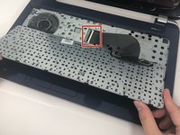 Unscrew the 6 mm Phillips #1 screw securing the keyboard.