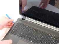 Using the spudger, pry between the case and keyboard/mousepad area.