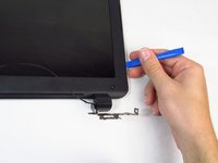 Use the tip of the blue plastic opening tool to separate the outer edge of the screen from the laptop.