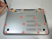 Remove thirteen 7 mm screws from the back panel using the Phillips #00 screwdriver.