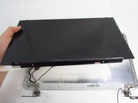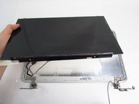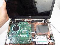 Carefully separate the top of the laptop and its hinges from the bottom half by pulling forward and up.