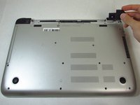 In the upper left corner of the motherboard, unscrew one captive screw from the charger port cover using the Phillips #00 screwdriver.
