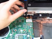 Unscrew one 6 mm screw on the wireless card with the Phillips #00 screwdriver.