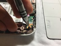 Using a magnetic screwdriver with a Philips #0 head, remove both screws that are holding down the circuit These screws are all about 5.5mm long.