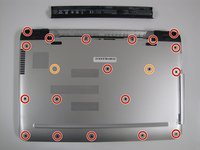 Remove the twenty 6.5mm screws using the Phillips #00 screwdriver.