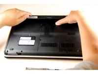 Turn the laptop over to access the backside of the computer.