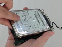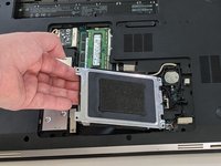 Lift the hard drive out of the slot from the side under the RAM slot.