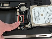 Pull the plastic ribbon attached to the connector to disconnect hard drive from the laptop.