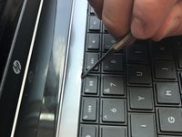 Slide the tool that is now under the keyboard sideways along the edge and use another tool to depress the other tabs along the edge of the keyboard.