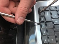 Pop the cover off using any flat metal tool, starting with where you took out the optical drive