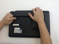 Turn the laptop over to reveal the battery.