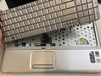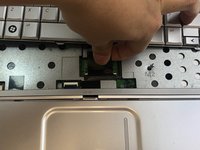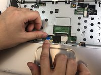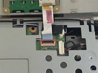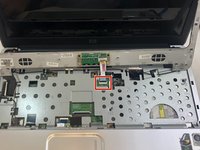 Remove the mouse and touchpad cable by lifting the black tab and gently pulling the cable out.