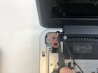 Using the Phillips #0 screwdriver, remove the four 4.0 mm screws on both hinges of the laptop's screen.