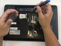 Using the Phillips #0 screwdriver, remove the seven 4.0 mm screws on the bottom of the laptop.