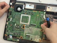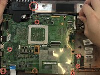 Remove seven 4mm Phillips #0 screws from the motherboard.