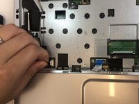 Using your fingertips, detach the ribbon cable by gently lifting up the black tab located on the bottom end of the cable.
