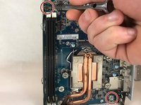 Remove the heatsink from the motherboard by removing three 24 mm screws using the Torx Head #15 screwdriver and gently lifting away from the motherboard.