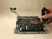 Disconnect the microphone computer chip from the internal components by first peeling away the black adhesive holding the wires to the chassis and gently pulling the chip and wires from its connection.