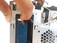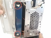 Remove the 2 black philips screws on the outside of the PC, to the left of the fan.