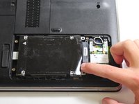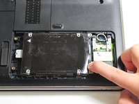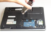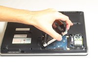 Turn your laptop over so the bottom of your laptop is facing up and the hinge is located away from you